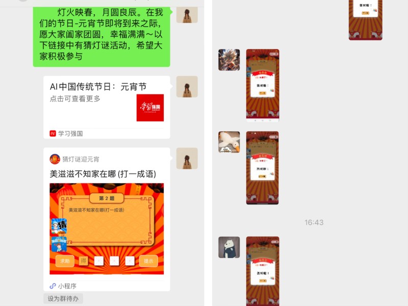 2月11日,八公司黨支部聯(lián)合太原城建工程有限公司黨支部、租賃公司黨支部、安裝公司黨支部、物業(yè)公司黨支部分別開展線上猜燈謎活動。謎題豐富多樣,涵蓋文化、體育、娛樂、年俗及筑路機械專業(yè)知識等多個領(lǐng)域,不僅讓職工在猜謎中深切感受了傳統(tǒng)節(jié)日的獨特魅力,還鍛煉了大家的思維能力和概括能力,營造出歡樂祥和、團圓幸福的濃厚氛圍。