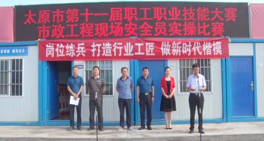 8月10日,由太原市總工會、太原市人社局、太原市經(jīng)信委、太原市科技局聯(lián)合主辦,太原市政建設集團有限公司承辦的太原市第十一屆職工職業(yè)技能大賽市政工程現(xiàn)場安全員實際操作比賽,在太原市政集團康樂街泵站項目部隆重舉行。太原市總工會經(jīng)濟技術部部長梁家齊,太原市職工技術交流站站長周彬,太原市住建委安全處處長李效忠,宣傳部副部長楊紅迎,太原市政集團領導郝東輝、馮忠出席了開幕式。開幕式由黨委委員、監(jiān)事會主席、工會主席馮忠主持。