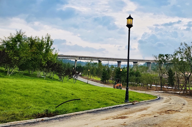 該工程屬于汾河四期治理美化工程的組成部分,要與園林、道路等同步施工,為呈現(xiàn)汾河美化整體效果,施工中時(shí)常出現(xiàn)設(shè)計(jì)變更情況,項(xiàng)目部結(jié)合施工實(shí)際,按照圖紙推進(jìn)施工。在三標(biāo)段施工中,設(shè)計(jì)要求將已做好燈基礎(chǔ)的草坪燈改為亮度更高、基礎(chǔ)更大的庭院燈,項(xiàng)目部組織施工人員在不破壞原有路燈基礎(chǔ)的情況下,再次擴(kuò)建開挖新的路燈基礎(chǔ),并在搭建更多模具的基礎(chǔ)上,通過澆筑混凝土保持其安全與穩(wěn)固。同時(shí),因部分路段要增加休息平臺,項(xiàng)目部將已做好的管線破除,重新設(shè)置休息平臺的末端管線接頭,并嚴(yán)格按照設(shè)計(jì)規(guī)劃,改為繞平臺一圈后再做管線與基礎(chǔ),以確保汾河景觀的整體呈現(xiàn)效果。