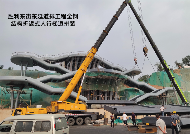 勝利東街東延道排工程起點(diǎn)東中環(huán)路,終點(diǎn)東山高速西側(cè)停車場,施工涉及污水管線、雨水管線、電纜隧道、電力排管、停車場一處,全鋼結(jié)構(gòu)折返式人行梯道一座及長52米,寬15米跨高速人行天橋一座。該工程建成后,成為市民通過橫跨東山過境高速和東峰路的“呂”字型人行天橋,更便捷從市區(qū)前往牛駝?wù)沂苛陥@的一條新線路,八公司全體參建人員先后克服半幅封閉施工、高度落差大、結(jié)構(gòu)工程復(fù)雜等難題,順利完成了跨東山高速公路人行天橋、全鋼鋼箱梁結(jié)構(gòu)人行梯道的施工任務(wù),以“市政實(shí)力”打造城市新名片。攻堅(jiān)戰(zhàn)的硝煙漸漸散去,奮戰(zhàn)的場面依然清晰如昨,市政人甘于奉獻(xiàn)、勇于擔(dān)當(dāng)?shù)木裼忠淮午澘淘谔鞘薪ㄔO(shè)的恢弘畫卷上。