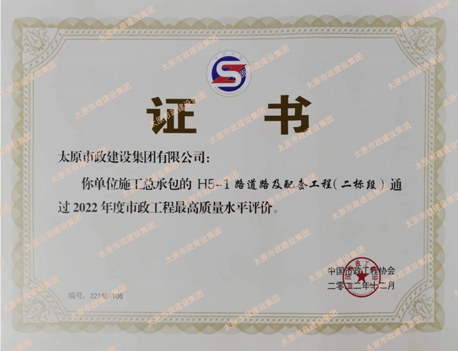 近日,集團公司承建的H5-1路道路及配套工程(二標段)通過了2022年度市政工程最高質量水平評價。