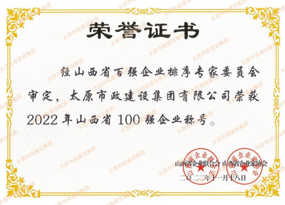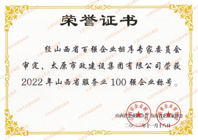 近日,集團公司榮獲山西省企業(yè)聯合會和山西省企業(yè)家協會頒發(fā)的“山西省功勛企業(yè)”和“山西省100強”(排名第45位)“山西省服務業(yè)100強”榮譽稱號。集團公司黨委副書記、副董事長、總經理溫慧武榮獲“太原市功勛企業(yè)家”榮譽稱號。
