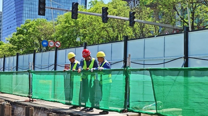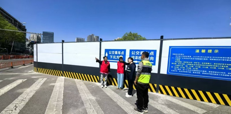 施工以來,集團(tuán)公司全程安排專人值守地鐵口交通導(dǎo)行,多舉措升級現(xiàn)場安全防護(hù)設(shè)施——開辟行人安全通道,協(xié)調(diào)劃定“公交專用通道”,在井蓋四周設(shè)置緩坡與明黃警示帶,為圍擋加裝柔和燈帶……以細(xì)微處的貼心舉措,實現(xiàn)“施工便民不擾民”。