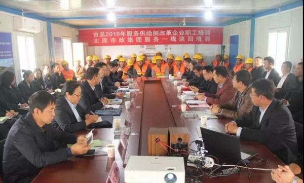 10月23日,太原市總工會服務供給側(cè)改革企業(yè)職工培訓定點單位太原市政集團服務一線巡回培訓開班儀式在四公司水馬路工地舉行。市總工會黨組成員、副主席汪倫,太原工會干部學校校長張全民,干校工會主席左蓮梅,太原市政集團黨委委員、董事、副總經(jīng)理溫慧武,黨委委員、監(jiān)事會主席、工會主席馮忠,總工程師高鴻出席。