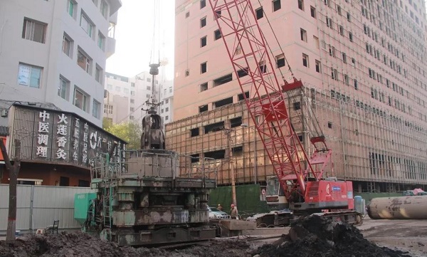 由于該地區(qū)都市廣場商場最初建設(shè)時基坑較深,地下遺留2到3排錨索在工程頂管頂進范圍內(nèi),為后續(xù)施工造成了極大阻礙。為了解決施工難題,項目部多次組織專家進行論證,經(jīng)過反復(fù)研究討論后,決定從中鐵一局天津分公司租用了兩臺360°全回轉(zhuǎn)鉆機,利用鉆機垂直鉆到地下14米處,在下鉆過程中通過套管上的刀頭將錨索切斷,再利用履帶吊和抓斗將錨索抓出,為頂管工序“掃清”了障礙,順利解決了施工難題,為后續(xù)工程的順利推進奠定了基礎(chǔ)。