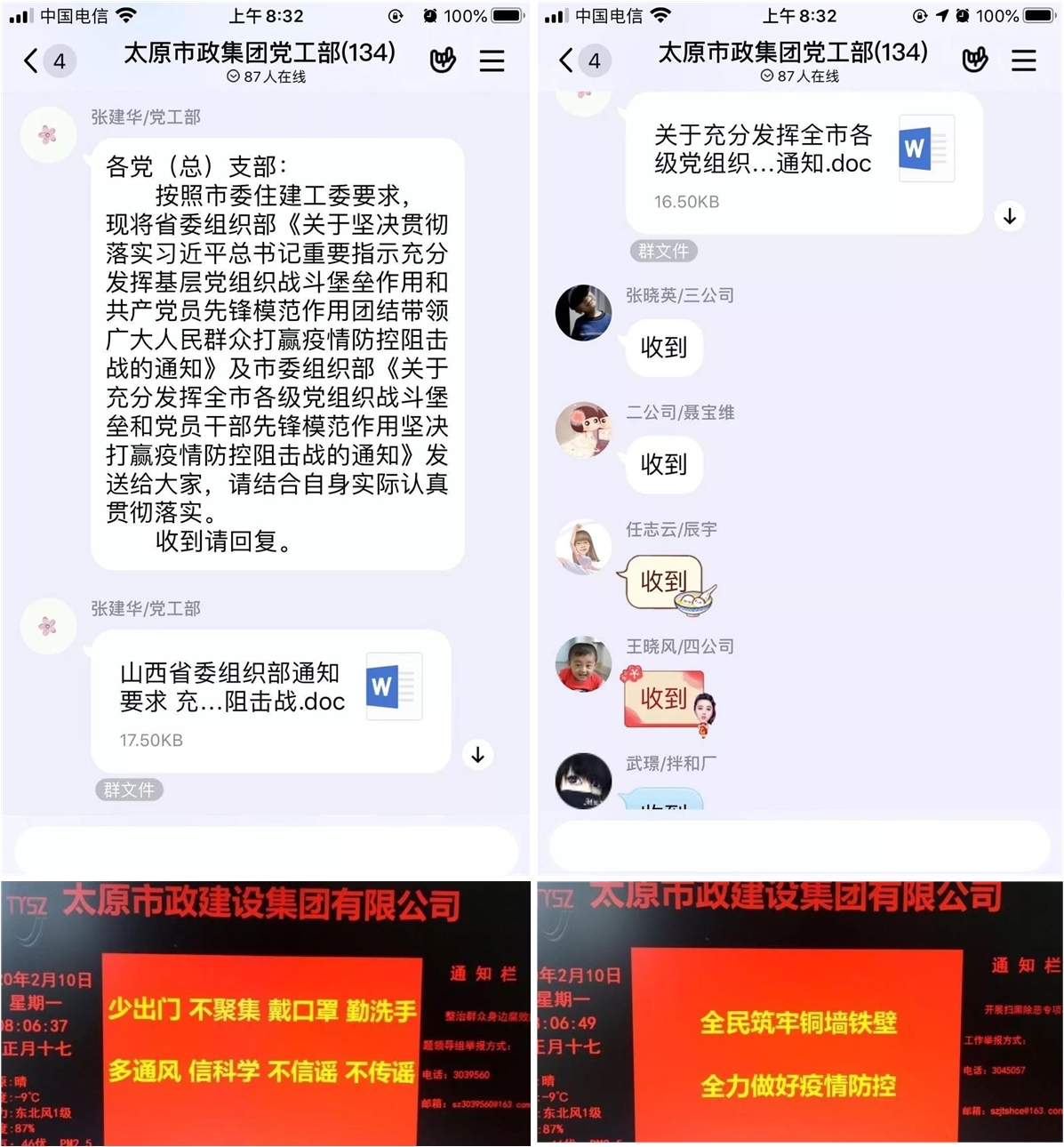 統(tǒng)一指揮,確保領(lǐng)導(dǎo)組織到位。為有效應(yīng)對(duì)新冠肺炎疫情,集團(tuán)公司迅速制定《太原市政建設(shè)集團(tuán)有限公司新型冠狀病毒防控應(yīng)急預(yù)案》,成立集團(tuán)公司新型冠狀病毒感染的肺炎疫情防控工作領(lǐng)導(dǎo)小組,以強(qiáng)有力的領(lǐng)導(dǎo)統(tǒng)籌協(xié)調(diào)推進(jìn)集團(tuán)公司疫情防范和處置工作。同時(shí),集團(tuán)公司制定《太原市政建設(shè)集團(tuán)有限公司關(guān)于做好春節(jié)后錯(cuò)峰返崗加強(qiáng)疫情防控的工作方案》,對(duì)職工復(fù)工前以及返程中個(gè)人防護(hù)、網(wǎng)上辦公等事項(xiàng)作出詳細(xì)安排和明確要求,保障集團(tuán)公司廣大職工身體健康和生產(chǎn)經(jīng)營穩(wěn)定有序。