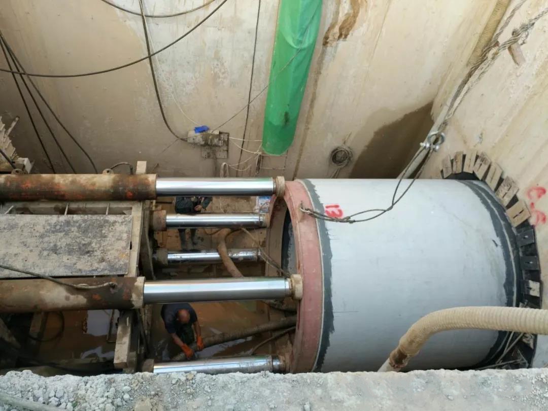 項(xiàng)目部三措并舉,強(qiáng)化“質(zhì)量意識(shí)”。頂管作業(yè)中,因有100米距離位于河道內(nèi),屬于濕陷性地質(zhì),施工人員通過干插片石、澆筑混凝土的方法進(jìn)行了墊層換填,提升了基層承載力,有效防止管道下沉;進(jìn)行頂管作業(yè)時(shí),部分路段需下穿房屋,為防止出現(xiàn)房屋開裂或下沉的情況,施工人員積極研究對(duì)策,決定采用頂管穿過房屋后及時(shí)注漿的措施,保證上方房屋安全;頂管機(jī)出洞吊裝時(shí),先用鋼板對(duì)2.4米口徑的管道進(jìn)行連接,并在管口處設(shè)置護(hù)管、抹帶,提升管道間的穩(wěn)定性和密封性,防止發(fā)生滲水現(xiàn)象,為后續(xù)施工開展打下堅(jiān)實(shí)基礎(chǔ)。