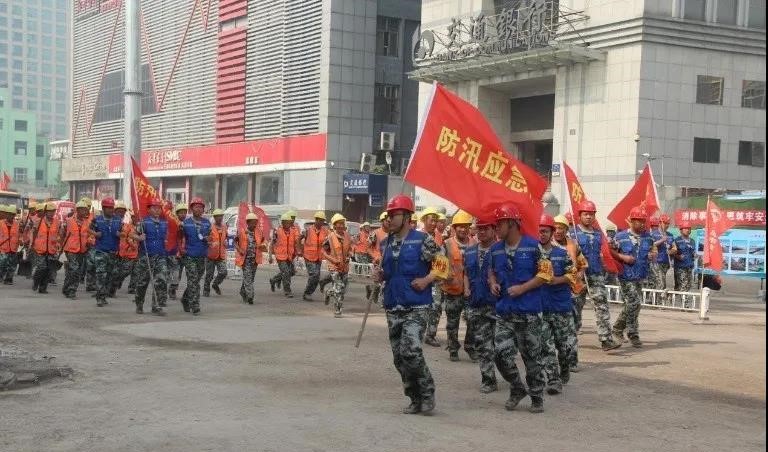 此次防汛應急演練設有快速集結、險區(qū)警戒、積水排放、井下清淘、筑壩搶險五個科目。在快速集結科目中,現(xiàn)場的82名搶險隊員攜帶搶險設備和物資,迅速奔向險情地點。在險區(qū)警戒科目中,后勤保障組對險情地點進行現(xiàn)場警戒及交通疏導,在通往事故現(xiàn)場的主干道上實行交通管制,保障現(xiàn)場各個通道暢通無阻。積水排放科目開始后,搶險隊員攜帶抽水設備迅速趕到施工現(xiàn)場,開始抽水工作,確保積水已下降至正常位置。井下清掏科目中,搶險隊員將井內的雜物清理干凈。最后一個科目是筑壩搶險,搶險隊員在現(xiàn)場配合默契,分工明確,順利完成此項科目。