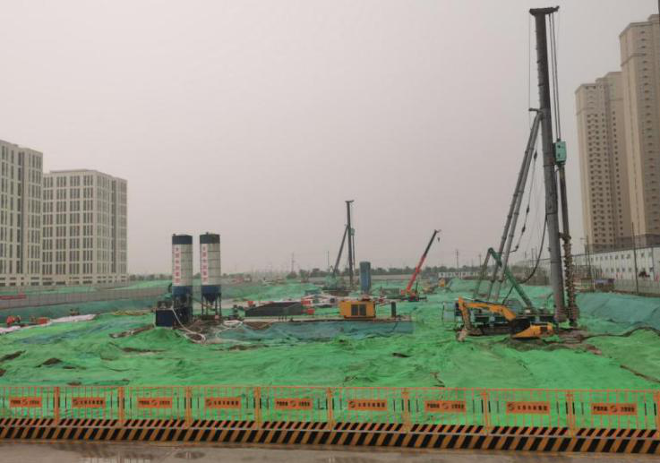 一公司承建的千峰路南延建設(shè)工程雨水泵站及調(diào)蓄池施工工程位于千峰南路南中環(huán)街交叉口西南角地塊,是2020年太原市重點市政工程項目,也是集團公司繼水西關(guān)街泵站、康樂街雨水泵站之后承建的施工難度最大的工程項目。該雨水泵站主體包括調(diào)蓄池和泵站兩部分,為全地下結(jié)構(gòu)。施工中,項目部積極改進技術(shù)、提升效率,推動工程順利進展。針對泵站基坑屬于危險性較大的分部分項工程,項目部主要采取地下連續(xù)墻加預(yù)應(yīng)力錨索體系和地下連續(xù)墻加鋼筋混凝土、預(yù)應(yīng)力鋼管內(nèi)支撐體系兩種方式進行基坑支護。地下連續(xù)墻加預(yù)應(yīng)力錨索體系是在基坑內(nèi)布置474根鋼筋混凝土灌注樁、77口網(wǎng)眼鋼管降水井、42口觀測井,120幅地下連續(xù)墻,分設(shè)三到四層共756道預(yù)應(yīng)力錨索,腰梁采取暗梁設(shè)置,陽角處設(shè)內(nèi)角撐梁以保證支護效果。地下連續(xù)墻加鋼筋混凝土、預(yù)應(yīng)力鋼管內(nèi)支撐體系是由于在陽角處受群錨影響,采取地連墻預(yù)應(yīng)力錨索效果較差,因此在共六幅地連墻處采用分為上層鋼筋混凝土支撐、中下層預(yù)應(yīng)力鋼管支撐的內(nèi)支撐方式,再加一道預(yù)應(yīng)力鋼管換撐。同時,該工程采用BIM技術(shù),通過提前的模擬建造工程規(guī)劃場地布置、精確建立模型,檢查管線、梁、柱的三維空間位置等手段輔助施工。
