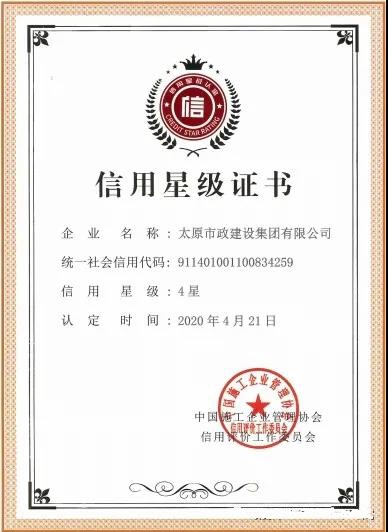 太原市政建設集團有限公司榮獲“2020年度工程建設誠信典型企業(yè)”榮譽稱號