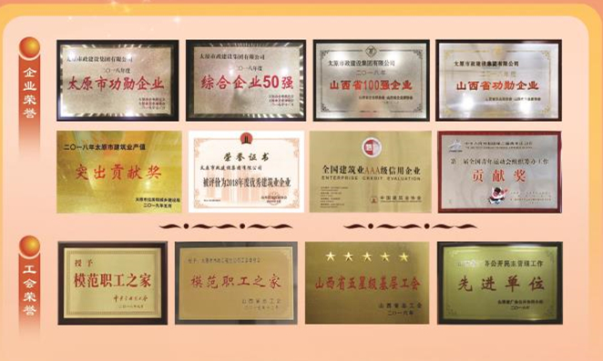 2019年,太原市政集團先后被評為全國優(yōu)秀施工企業(yè)、中國施工企業(yè)管理協(xié)會AAA級信用企業(yè)、山西省百強企業(yè)(第39位)、省骨干建筑業(yè)企業(yè)、省市優(yōu)秀建筑業(yè)企業(yè)、太原市企業(yè)50強(第25位)、太原市功勛企業(yè),獲得太原市建筑業(yè)產(chǎn)值突出貢獻獎、第二屆全國青年運動會組織籌辦工作貢獻獎等。太原市政集團承建的太原市松小線建設工程、新晉祠路道路改造工程、臥虎山快速路建設工程一標段、普國路道路改造工程一標段、西寨北街、西寨路道路建設工程獲得2019年度全省市政金杯示范工程獎……