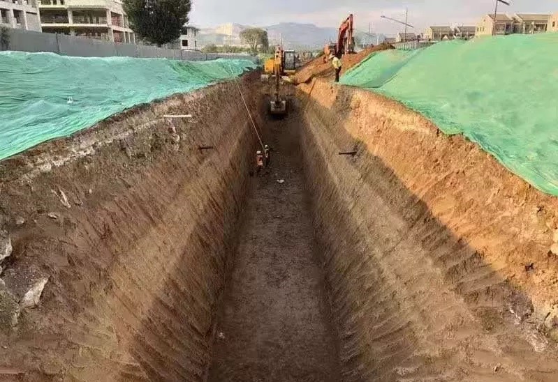 該工程道路兩側(cè)緊鄰沿線村莊的農(nóng)田、大棚,施工作業(yè)面狹窄,大量開挖土方因場地有限無法進行放置,嚴重影響施工正常推進。目前,項目部正在加快解決征地問題,積極與業(yè)主、村委會等溝通聯(lián)系,爭取盡快突破場地面積小的施工難點,擴大施工作業(yè)面積,便于大量土方堆放,為后續(xù)施工贏得更多時間。在溝槽開挖施工時,由于工程全線平均溝槽深度為8米,在道路西村段深度達到9米,但因長臂挖機的機械臂長度為5米,無法達到溝槽底部進行土方外運。項目部果斷采取有效措施,先利用一臺挖機進行放坡作業(yè),將整體高度降低2.5米,在確保施工安全的前提下,再利用兩臺挖機下到下降高度處,接力倒運土方到路面的4臺鏟車進行清運,保證整個土方外運工序銜接緊密、流水作業(yè),加快工程進度。同時,因施工南段道路兩側(cè)位于農(nóng)作物種植地帶,土質(zhì)屬于濕陷性黃土,無法直接用于道路施工,為加強工程質(zhì)量管控,項目部針對整個施工斷面進行了清表及換填處理,確保道路施工符合質(zhì)量標(biāo)準(zhǔn)。