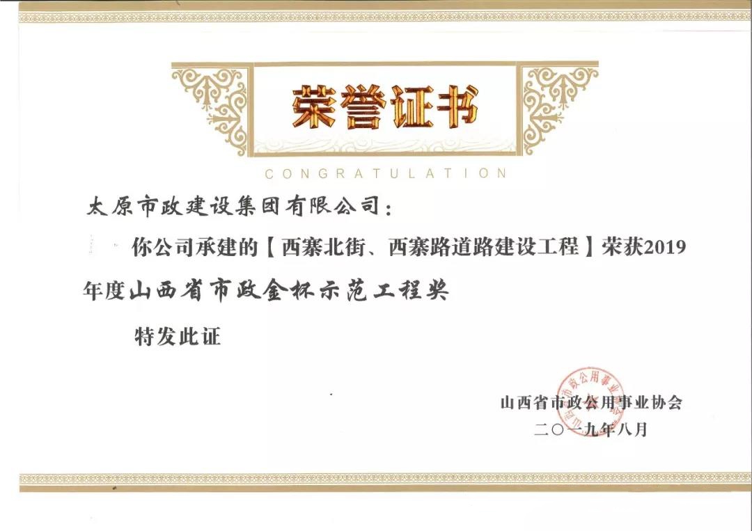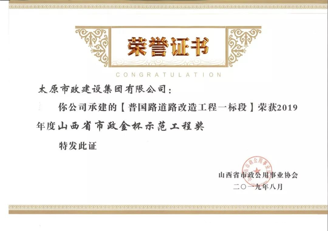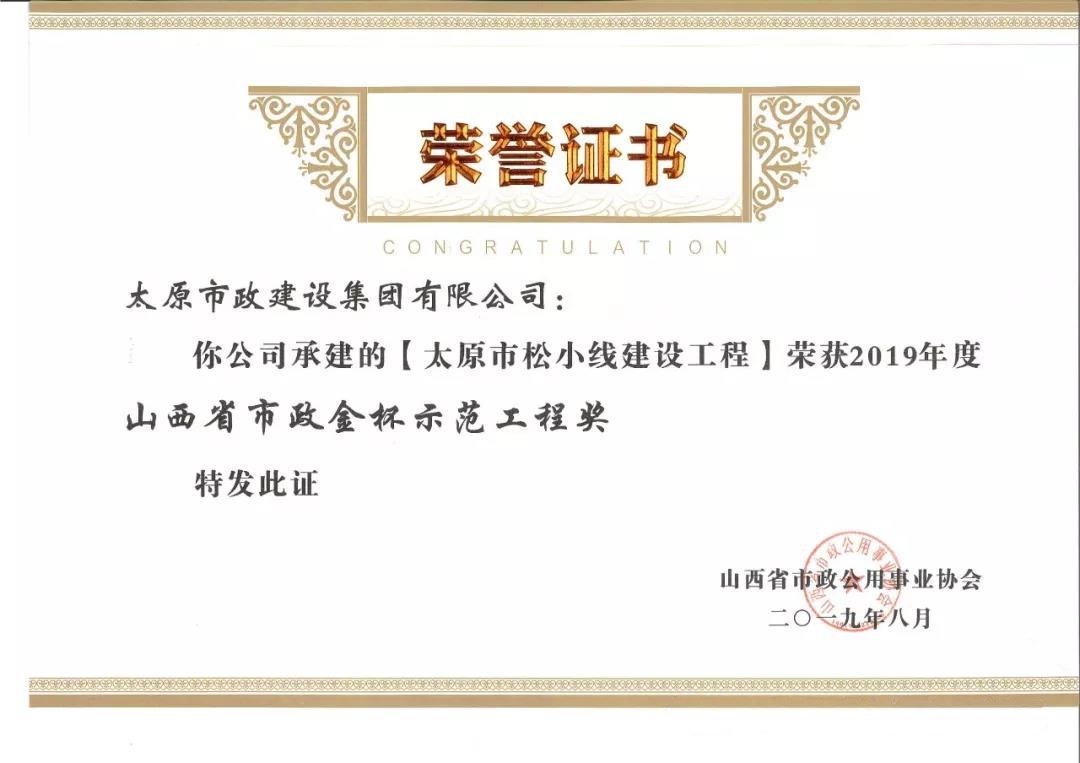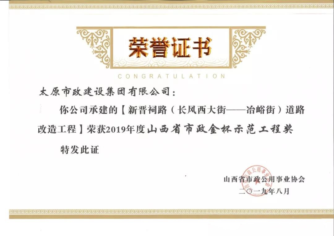 近日,太原市政建設(shè)集團(tuán)有限公司承建的太原市松小線建設(shè)工程,新晉祠路(長(zhǎng)風(fēng)西大街-冶峪街)道路改造工程,臥虎山快速路建設(shè)工程一標(biāo)段工程,普國(guó)路道路改造工程一標(biāo)段,西寨北街、西寨路道路建設(shè)工程榮獲山西省市政公用事業(yè)協(xié)會(huì)頒發(fā)的2019年度“山西省市政金杯示范工程”榮譽(yù)稱(chēng)號(hào)。集團(tuán)公司王愛(ài)蓮、劉桂英、李瑞金、閆玲、王根和榮獲2019年度“山西市政工程優(yōu)秀項(xiàng)目經(jīng)理”榮譽(yù)稱(chēng)號(hào)。